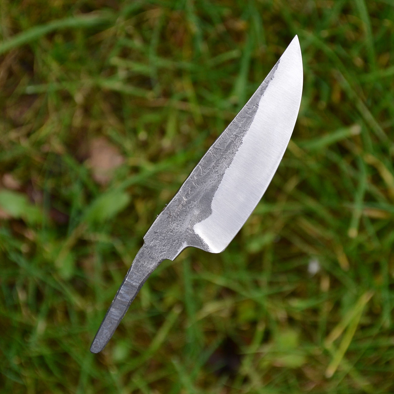 Klinga (blank, ostrze) noża myśliwskiego do samodzielnej oprawy. Ręcznie wykute ze stali łożyskowej ŁH15. Ostrze wysyłam w pełni naostrzone, jeżeli chcesz naostrzone fałszywe ostrze, proszę o informację przy zakupie.
